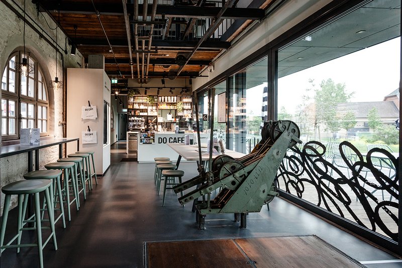 Der Schornstein des Gebäudes ist zwar nicht mehr in Gebrauch, wurde als historisch stilprägendes Element der Dachlandschaft jedoch im Original erhalten.