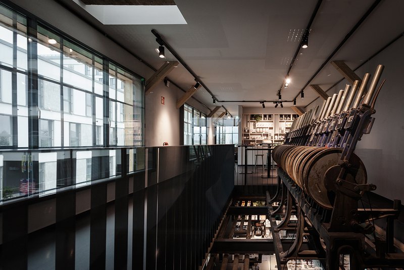 Ein Luftraum ermöglicht den Blick ins Obergeschoss und damit auf den zweiten für den Betrieb des Stellwerks relevanten Teil der Anlage - die Stellwerksmechanik.