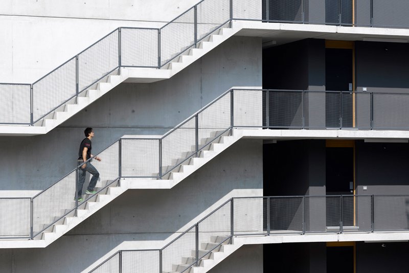 Zentrales städtebauliches Element ist die Nord-Süd-Verbindung für Fußgänger und Radfahrer, die den Universitätscampus mit dem Neckarufer verbindet. An dieser Achse entstandenen spannende Raumfolgen und so Plätze mit unterschiedlichen Charakteren. Der fließende Übergang zwischen öffentlichem Weg und privatem Quartier lässt Ein- und Ausblicke zu, lädt zu Kommunikation und Austausch ein – so auch bei dem neugebauten Studentenwohnheim.