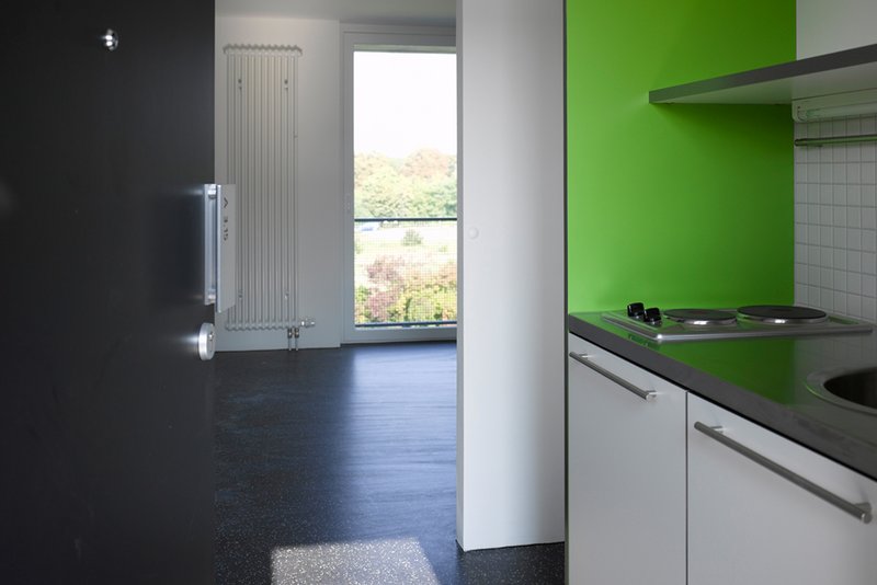 Der Neubau des Studentenwohnheims für die Universität Heidelberg steht in prominenter Uferlage am Neckar auf dem so genannten "Neuenheimer Feld". In diesem heterogenen, durch solitäre Hochpunkte und einzelne Gebäuderiegel geprägten Quartier entstand ein freundlicher und gemeinschaftsorientierter Wohnort für 194 Studierende.