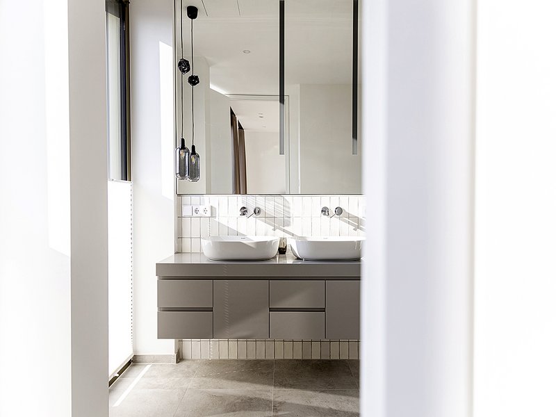 Organisation und architektonische Erscheinung Alle Nutzungen werden zentral von einer kolonnadenartigen Eingangszone erschlossen, wobei auf eine subtile Trennung der jeweiligen Nutzungen geachtet wird (bogenförmige Zugänge als Narrativ an das benachbarte Motiv der Eisenbahnbrücke). Im Erd- und Zwischengeschoss sind die Räumlichkeiten für eine großflächige Gastronomienutzung vorgesehen, während in den 4 oberen Sockel- und 5 weiteren Turmgeschossen (Ebenen E+1 bis E+9, mit flexibler Raumteilung) gewerbliche Nutzungen untergebracht sind (Arztpraxen, ambulantes OP-Zentrum, Rechtsanwaltskanzleien, Physiotherapieeinrichtungen, Büro- und Verwaltungsnutzungen).Die Ebenen E+10 bis E+16 sind ausschließlich der Wohnnutzung vorbehalten: pro Turmebene werden jeweils 4 unterschiedlich große, offene Wohngrundrisse mit vorgelagerten Loggien konzipiert (70 m² bis 130 m²). In 2 Tiefgaragenuntergeschossen finden insgesamt 80 Stellplätze Platz. Das Hochhaus, mit einer Gesamthöhe von ca. 64 m, wird über einen zentralen Sicherheitstreppenraum erschlossen, ergänzt um 3 Aufzüge (u.a. FWA).