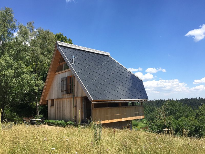 Erneuerbare EnergienIn Abstimmung mit dem Landesdenkmalamt und unter Beratung durch die Experten des Fraunhofer Institutes für solare Energiesysteme ISE in Freiburg wurde auf der südlichen Dachfläche des Speichers eine großfläche Photovoltaikanlage als homogene In-Dach-Lösung in Verbindung mit einer Batteriestation im Keller des Gebäudes installiert. Die einander überlappenden, rautenförmigen und rahmenlosen Platten der Solaranlage erinnern an die Schindelbekleidung älterer Dächer. Ziel war die Schaffung einer denkmalgerechten Musterlösung. Das Umnutzungskonzept unter Aussparung der denkmalkonstituierenden Kornkästen und mittels eines neun Unterbaus für die installationsintensiven Bereiche, ermöglicht die Umsetzung geltender energetischer Neubaustandards, ohne den historischen Bestand zu beeinträchtigen. Der Einsatz einheimischer Weisstanne als Hauptbaustoff in energiearmer traditioneller Bautechnik sorgt für Nachhaltigkeit, wie sie für die Weiterverwendung eines Jahrhunderte alten Gebäudes per se bereits gegeben ist.
