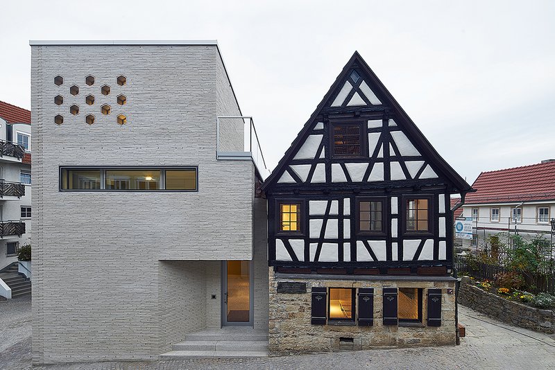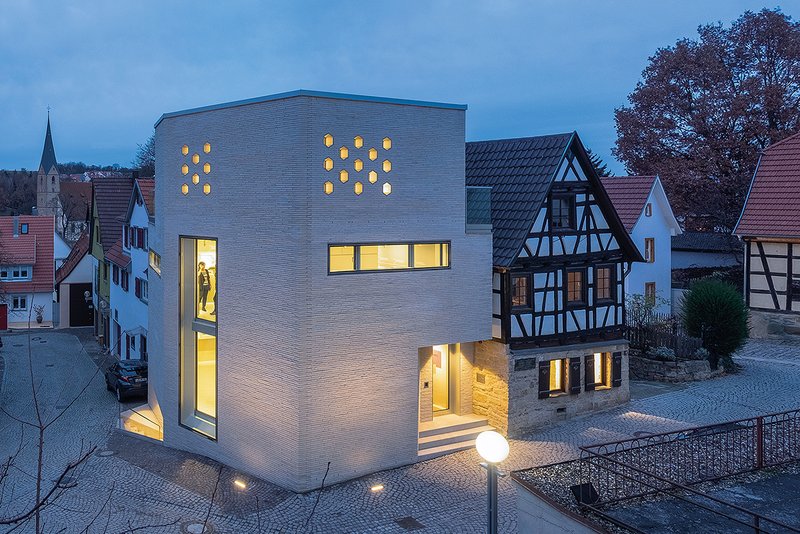 In der Marbacher Altstadt wurde 2018, in enger Absprache mit dem Denkmalamt, das bestehende Museum im Geburtshaus des Astronomen und Mathematikers Tobias Mayer um einen Neubau erweitert. Die ursprüngliche Museumsfläche konnte so von 18 m² auf etwa 160 m² vergrößert werden. Der Neubau ist durch seine Lage in der Altstadt, die Nachbarschaft zum historischen Geburtshaus aus dem Jahre 1711 und den Kontext des Werkes von Tobias Mayer geprägt.Der unregelmäßige Grundriss und die Ecklage des Grundstücks unterstreichen die aufstrebende Kubatur, die gleichzeitig Mayers Arbeiten zum Festungsbau widerspiegelt und an eine Sternwarte erinnert. Bei der Materialentscheidung fiel die Wahl auf den handgeschöpften Kolumba-Ziegel, dieser verstärkt die monolithische Anmutung und verbindet sich mit den traditionellen Materialien der mittelalterlichen Umgebung.Ist der Baukörper wesentlich vom historischen Stadtgefüge geprägt, wurden bei der Gestaltung Querverbindungen zu Mayers reichem Leben und Schaffen hergestellt. Mayers Farblehre mit ihren sechseckigen Feldern findet sich in der Fensterform im Obergeschoss wieder. Ein zweigeschossiges, sechs Meter hohes Fenster dient als Schaufenster für das Museum und gewährt spannende Ausblicke auf dem Weg von Geschoss zu Geschoss.Der Ausstellungsbereich im Geburtshaus wird vom Neubau aus erschlossen und thematisiert die Person Tobias Mayer. Im Eingangsgeschoss des Neubaus werden die Themenbereiche Kartografie und Kupferstich behandelt. Mayers Arbeiten zur Astronomie und Mondforschung, seine Mondkarten und die Lösung des Längenproblems werden im ersten Obergeschoss gezeigt. Interessierte lädt die Bibliothek im zweiten Obergeschoss zum Selbststudium und zur Themenvertiefung ein. Große Fensterflächen und ein Oberlicht sorgen für eine Fülle von Tageslicht. Bei Nacht können von der Dachterrasse aus die Sterne beobachtet werden.