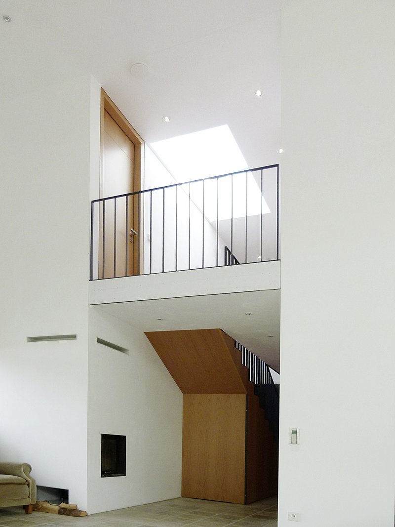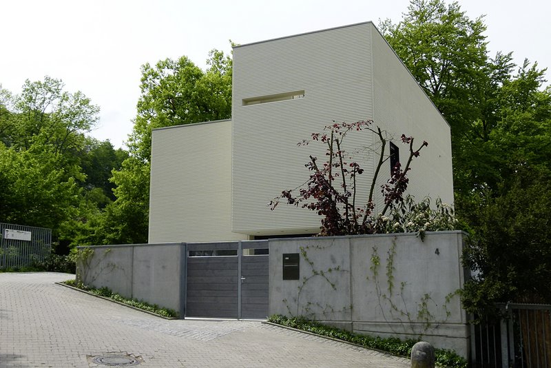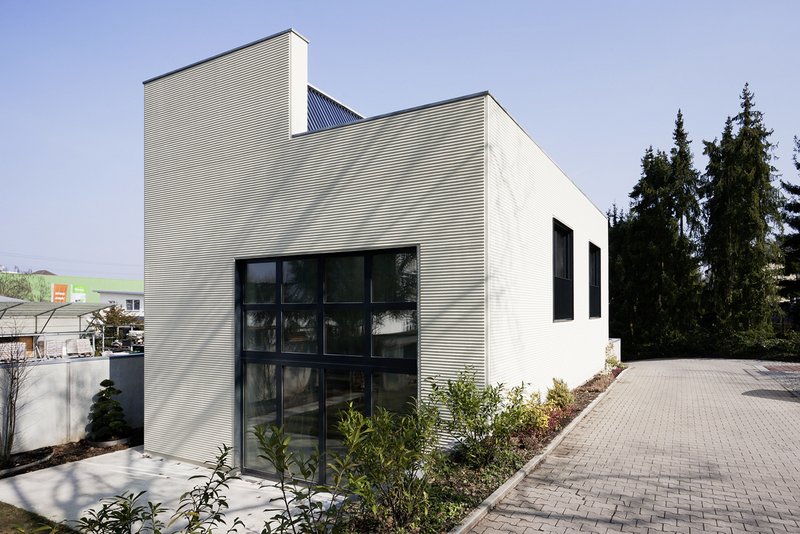 EntwurfskonzeptAm Eingang eines parkartigen Grundstücks am Rande eines Industriegebietes konnte eine Liegenschaft erworben werden. Dort errichtete der Bauherr an einer um 90° abbiegenden Durchgangsstraße ein schlankes dreigeschossiges Gebäude als städtebauliche Dominante – das "Torhäusle". Es setzt sich selbstbewusst an die Grenze zwischen zwei extremen Nutzungen aus Park und Baumarkt und schirmt so beide Bereiche voneinander ab. Der fragmentarische Platz vor dem Torhäusle und der Kurve bildet gleichsam den Schlussstein der örtlichen Wohnbebauung.Aufgrund des heterogenen Umfeldes und der Lage an zwei Straßen entsteht ein introvertiertes Gebäude, welches mit Umfassungsmauern in Sichtbeton alle Grundstückgrenzen besetzt und im Zusammenspiel differenzierte Außenräume schafft. Das Gebäude für zwei Personen wird durch das namensgebende Tor und den dahinter liegenden Patio betreten. In gerader Linie erreicht man den mit dem auskragenden Obergeschoss geschützten Eingangsbereich. Die klare Struktur und Ordnung setzt sich im Inneren fort. Räume und Funktionen fädeln sich entlang eines von oben belichteten Flurs mit Treppenhaus. Enge und weite Zonierungen wechseln sich ab und sorgen so für Spannung. Auf der Westseite öffnet sich ein zweigeschossiger offener Raum zum sorgsam gestalteten Hofgarten. Im Obergeschoss befinden sich die privaten nach Süden gerichteten Räume, im Erdgeschoss alle öffentlichen Wohnfunktionen und ein HWS-Arbeitszimmer.Wertige Oberflächen aus Naturstein (Jura), Corklinoleum und Buchenholz runden das Bild mit haptischen Qualitäten ab.