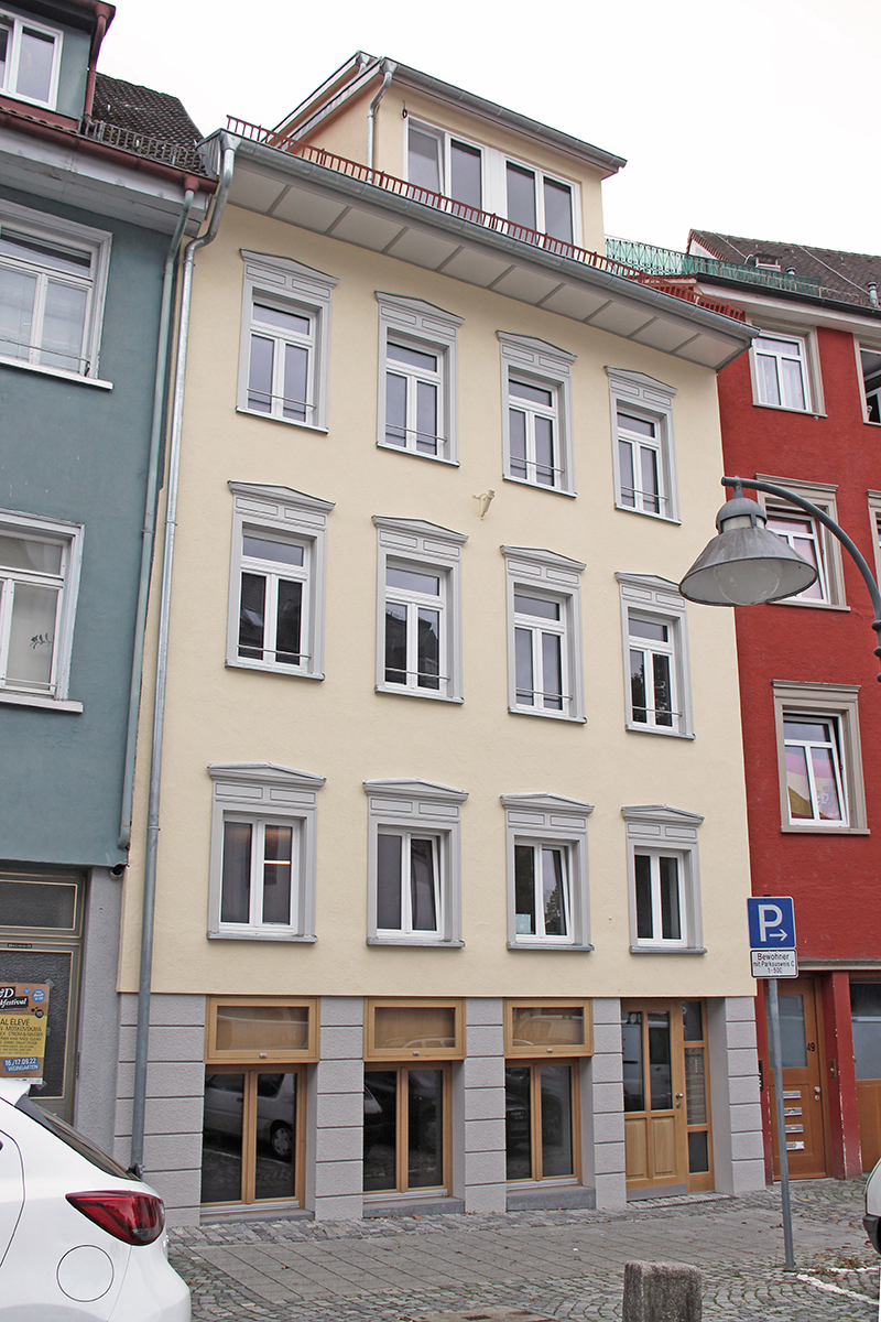 Die Bauarbeiten umfassten den Einbau eines betonierten neuen Treppenhauses samt Aufzug, die Erneuerung der gesamten Haustechnik einschließlich dem Einbau einer Hybridheizanlage mit einer Luftwärmepumpe, die Herstellung des Brand- und Schallschutzes sowie die Wiederherstellung der historischen Fassade zur Bachstraße. Auf der Rückseite wurde die vorhandene Balkonzone samt Fassade an die Ansprüche modernen Wohnens angepasst. Über die ersten drei Etagen entstanden Büroflächen, darüber drei Mietwohnungen unterschiedlicher Größe, eine davon barrierefrei.