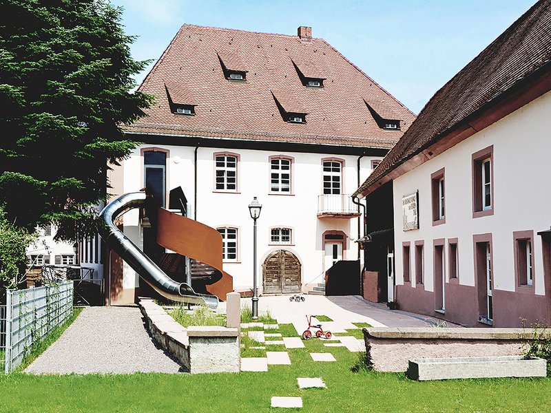 Das Massivgebäude aus dem Baujahr 1771 unterlag in der langjährigen Nutzung mal als Wohngebäude und auch als Arbeitsplatz einer kontinuierlichen Anpassung. Glücklicherweise wurden aber sehr viele Gebäudeeigenheiten seit der Erbauerphase unverändert gelassen. Das im Spätbarock errichtete Gebäude beherbergte bis zum Sommer 2016 die "Touristeninformation" und die "Volkshochschule" der Stadt Waldkirch. Aufgrund der stark gestiegenen Bedürftigkeit an zusätzlichen, dauerhaften Betreuungsplätzen für Kinder über und unter 3 Jahren beschloss der Gemeinderat eine Erweiterung zu einer vorhandenen Kindergarteneinrichtung. Durch die Einrichtung einer Außenstelle in dem Gebäude "Kirchplatz 2" als Kindertageseinrichtung musste ein akuter Platzmangel behoben werden. In enger Abstimmung mit den zuständigen Denkmalpflegemitarbeitern wurde jeder Eingriff in die Bausubstanz auf die Notwendigkeit überprüft.