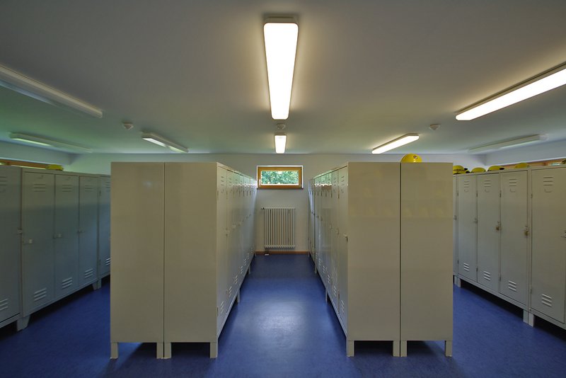 Bei den Entwurfsgedanken zu oben genannten Bauvorhaben war ein wesentlicher Punkt, die Einbindung des Funktionsgebäudes in die überwiegend bewaldete Umgebung. Dies wurde durch einen langen kubischen, mit einem zinkblechbelegten Pultdach versehenen, zweigeschossigen massiven Baukörper mit äußerer Holzverkleidung umgesetzt. Die horizontale Douglasien-Schalung im Obergeschoss soll die Länge noch verstärken.