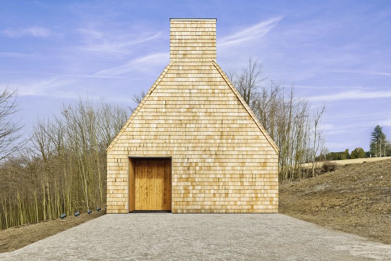 StandortBei der Wahl des Standortes für die Kapelle ist die Lage auf der Waldlichtung oberhalb der Tagungshäuser besonders vorteilhaft.Einerseits wird dadurch der herausragenden Bedeutung des Hauses ebenso sinnbildlich entsprochen, wie dem Wunsch nach "Herausnehmen aus dem Alltag". Andererseits fügt sich die Kapelle dennoch ganz selbstverständlich als weiterer Baustein in die Gesamtanlage ein. Mehr noch: sie ergänzt sie mit ihrem Vorplatz in einer Weise, die dem Ensemble eine neue, dorfähnliche Qualität verleiht. Schließlich haben Dörfer fast immer Kirchen mit einem Kirchplatz davor.
