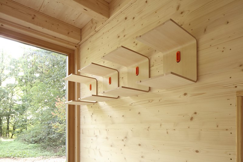 Waldkindergarten HockerJedes Kind kann den Hocker flexibel einsetzen. Wird Freifläche benötigt, dient das dezentrale Griffloch einfach zur Wandbefestigung. Gefertigt wird der Hocker im nahegelegenen Hoffnungshaus – einer Einrichtung für integratives Wohnen.