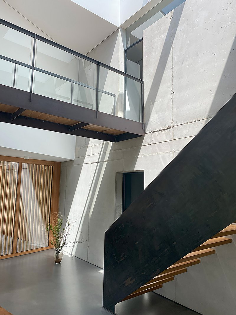 Wohnen, Arbeiten und ÖffentlichkeitErweitert wurde die Kellerei im Jahr 2023, um Wohnen und Arbeiten zu vereinen. Der Gutshof ist der zentrale Vorplatz, die Kellerei der nun in einem privaten und introvertierten Eingangshof endet.