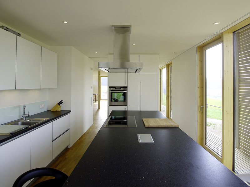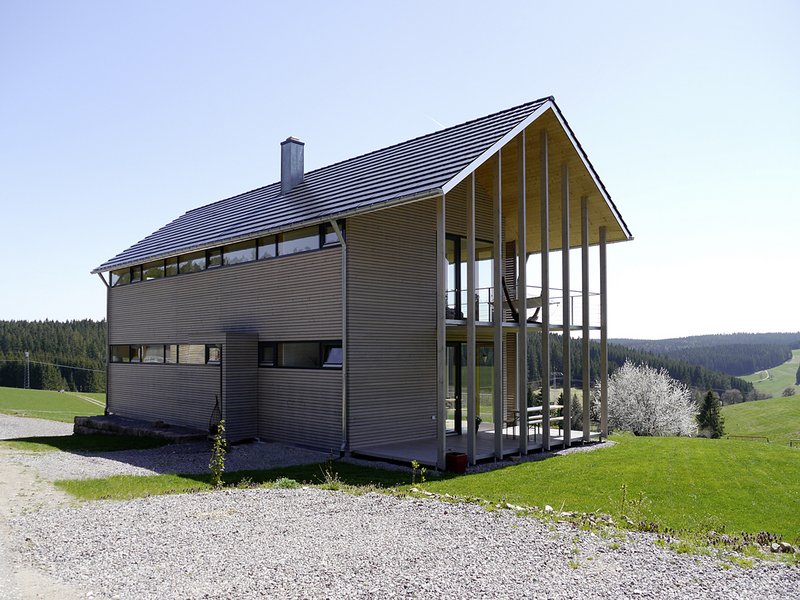 Da der Bauherr über eigenen Wald verfügt, wird das Gebäude über eine Holzheizung beheizt. Ebenfalls wurde das Konstruktionsholz im eigenen Wald geschlagen und zur Sägerei geliefert.