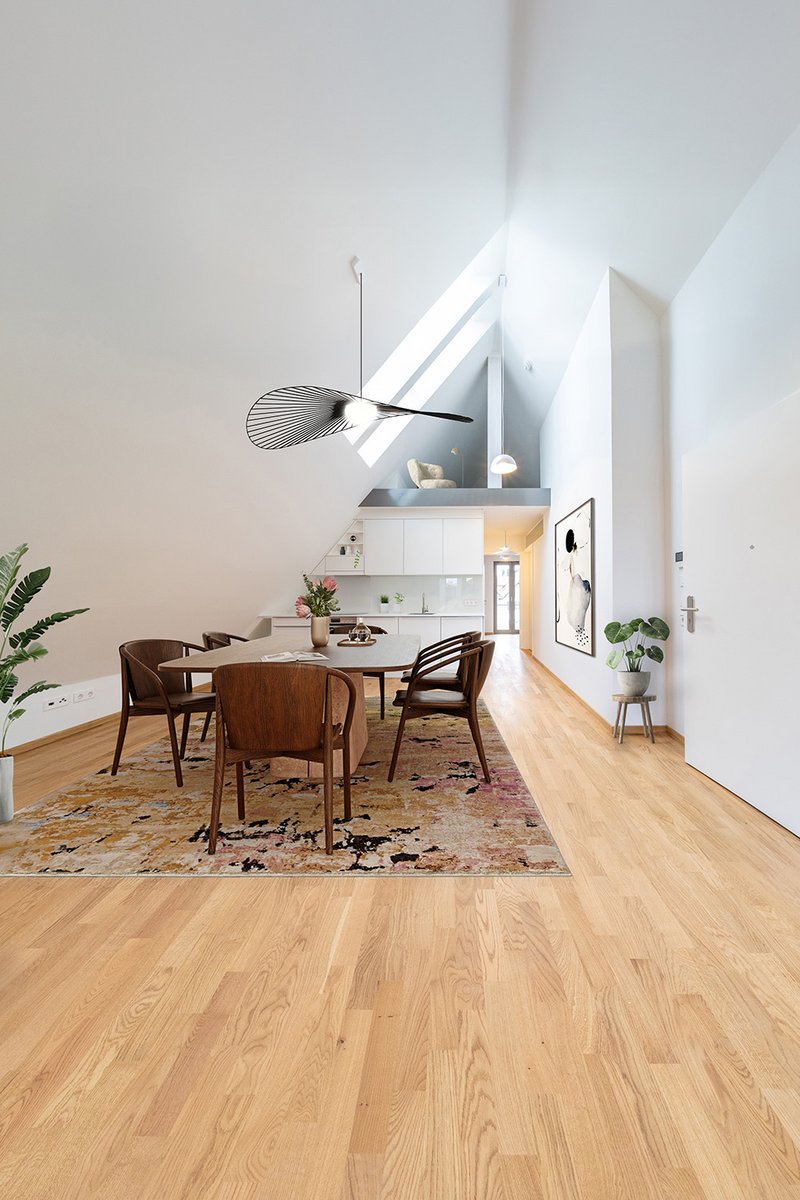 • Eine Luft-Wasser-Wärmepumpe übernimmt die Heizleistung, unterstützt durch einen zentralen Pufferspeicher.• Die Wärmeverteilung erfolgt über eine flächendeckende Fußbodenheizung in allen Einheiten.• Die kontrollierte Be- und Entlüftung wird über eine zentrale Lüftungsanlage mit Wärmerückgewinnung in den Nebenräumen und dezentrale Abluftanlagen in den Bädern realisiert.• Auf dem Dach wurde eine Photovoltaikanlage zur Eigenstromerzeugung installiert.