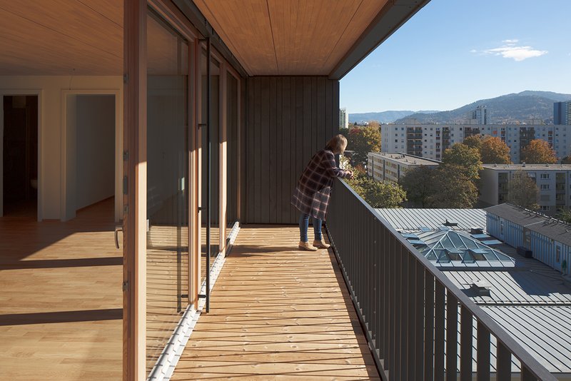 Der Brandschutz stellte übergeordnet an vielen Stellen eine Herausforderung dar. Für viele Konstruktionen mussten trotz vorliegender Prüfzeugnisse individuelle Lösungen gefunden und separate Absprachen mit dem Baurechtsamt getroffen werden, da es für ein Gebäude dieser Größe, komplett aus Holz gefertigt, bislang kein Vorbild und keine eindeutigen gesetzlichen Rahmenbedingungen gab. Entsprechend umfangreich war der Abstimmungsbedarf mit den städtischen Behörden. Auf den Einsatz aufwändiger und im Unterhalt wartungsintensiver Haustechnik als Kompensation für die Holzbauweise konnte verzichtet werden.
