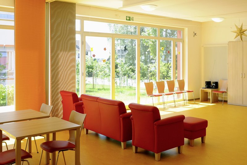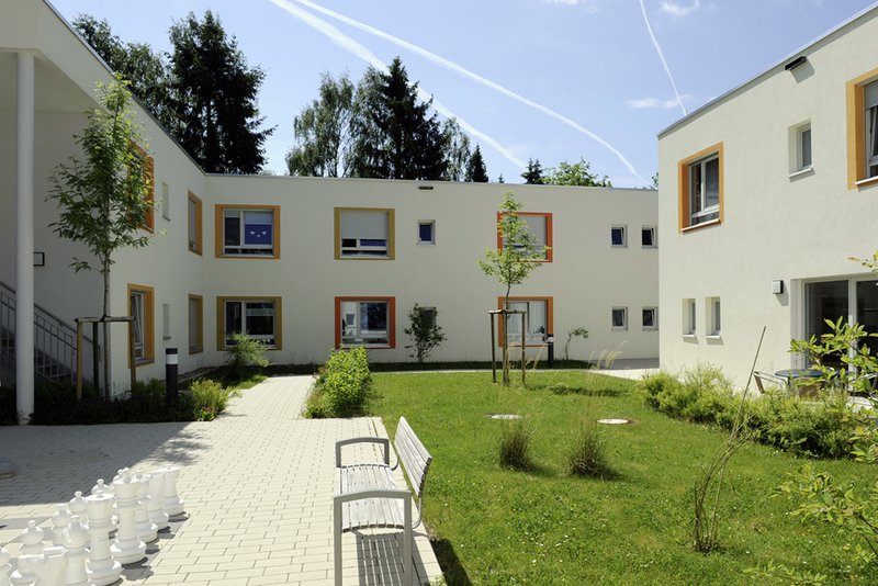 Die Außenanlage lädt zum Spielen, Grillen und zu kleineren Spaziergängen ein. Auch Bewohner, die ohne Begleitung nicht das Gelände verlassen dürfen, haben durch die Einfriedung der Grünflächen die Möglichkeit, sich selbständig ins Freie zu begeben. Die Bewohner und Mitarbeiter gestalteten die Zimmer und Gemeinschaftsräume nach ihren Vorstellungen. Dies ist ihnen hervorragend gelungen.