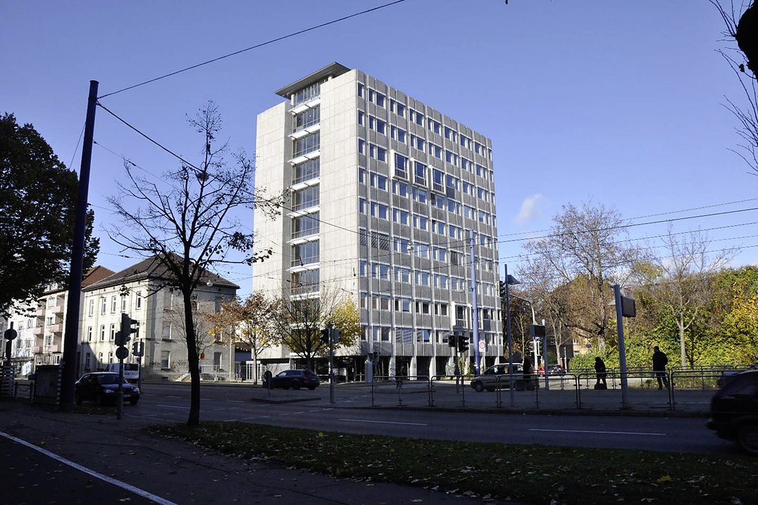 Justizhochhaus Ulm(1959-62)Arbeitsgericht, Notariat, Staatsanwaltschaft mit Sitzungssälen, UlmB: Ehemaliges Staatliches Hochbauamt Ulm (heute Vermögen und Bau Baden-Württemberg)A: Planung und Bauleitung durch das ehemalige Staatliche Hochbauamt Ulm, Galgenberg (heute Vermögen und Bau Baden-Württemberg)