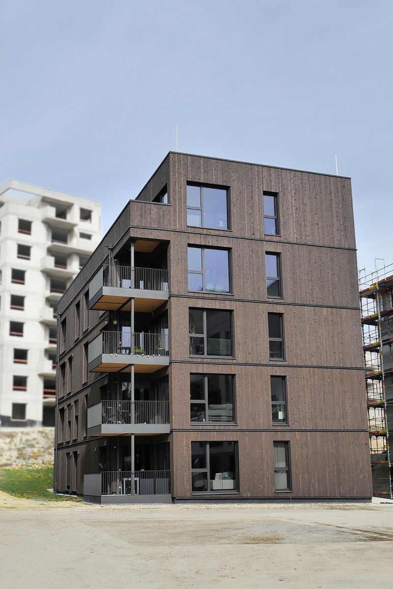 Neubau Wohn- u. Geschäftshaus in Ulm | 2023 gemeinsam wohnen, leben und arbeiten in Ulm, Leimgrubenweg 30 B: Baugemeinschaft bob GbR, Ulm A: Dipl. Ing (FH) Anja Groschupp, Ulm, mit der Merklegruppe projekt holzbau immobilien GmbH, Bissingen/ Teck