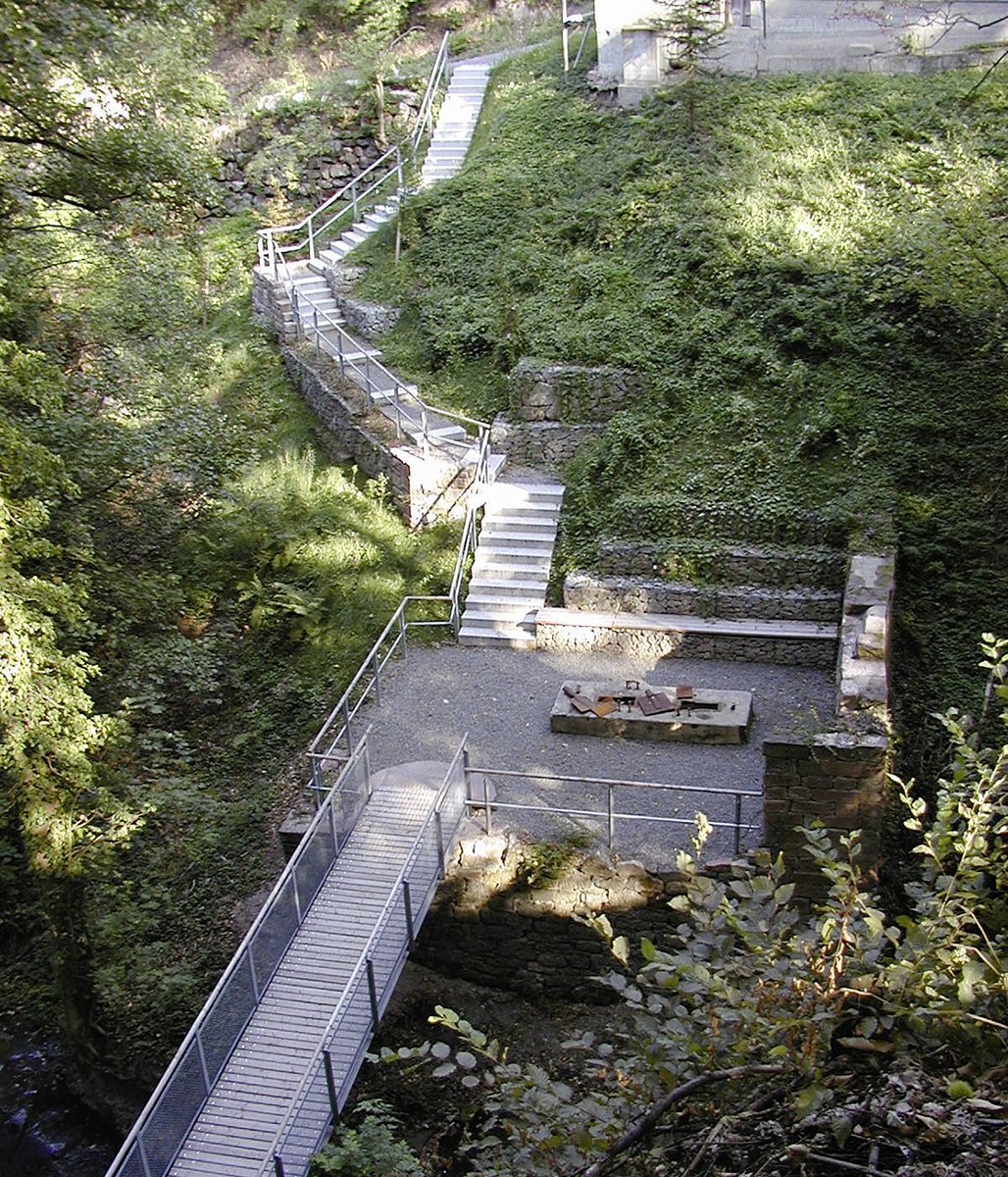 Die Schaffung des Wanderweges im Wiedenbachtal unterhalb der Gertelbachwasserfälle in Bühlertal, das ist Landschaft pur; d. h. sanfte Transformation durch Affirmation und Intervention in die Landschaft – Stege, Treppen, Weg, Arbeiten mit dem Herausarbeiten der Gegebenheiten der Landschaft.