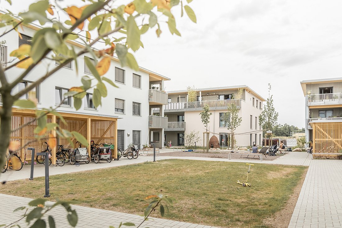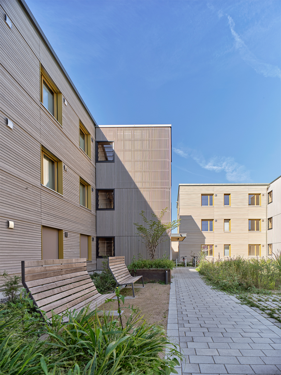 Zwischendörfer – Mehrfamilienhäuser in Holzbauweise | 2023 Ehrenkirchen B: OEKOGENO eG, Freiburg; Projektleitung: Ingo Gerresheim, Philipp Weber, Carolin Trautmann A: ABMP Architektur und Generalplanung Munkel Preßer PartG mbB, Freiburg mit VEIT ARCHITEKTUR, Freiburg │ GK bauphysik, Dr. Gossauer & Krauthausen Architekt und Bauing. PartGmbB, Freiburg LA: Freisign Landschaftsarchitektur Part.GmbB, Freiburg