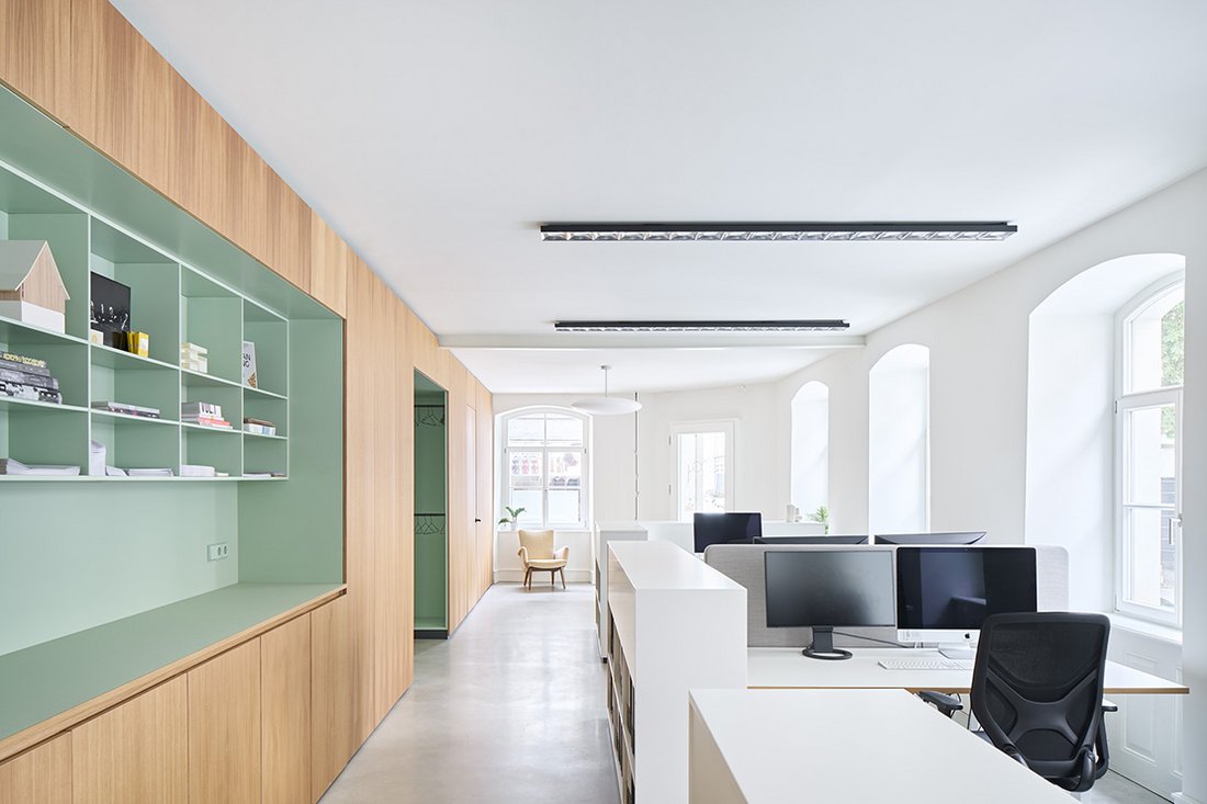 Revitalisierung Laden / Gastronomie zu Büro mit Gewerbeeinheit im EG | 1881 / 2023 Umnutzung historischer Bausubstanz zu neuen Arbeitswelt Werderstr. 28, Karlsruhe A + B: joa studio für architektur gmbh, Karlsruhe
