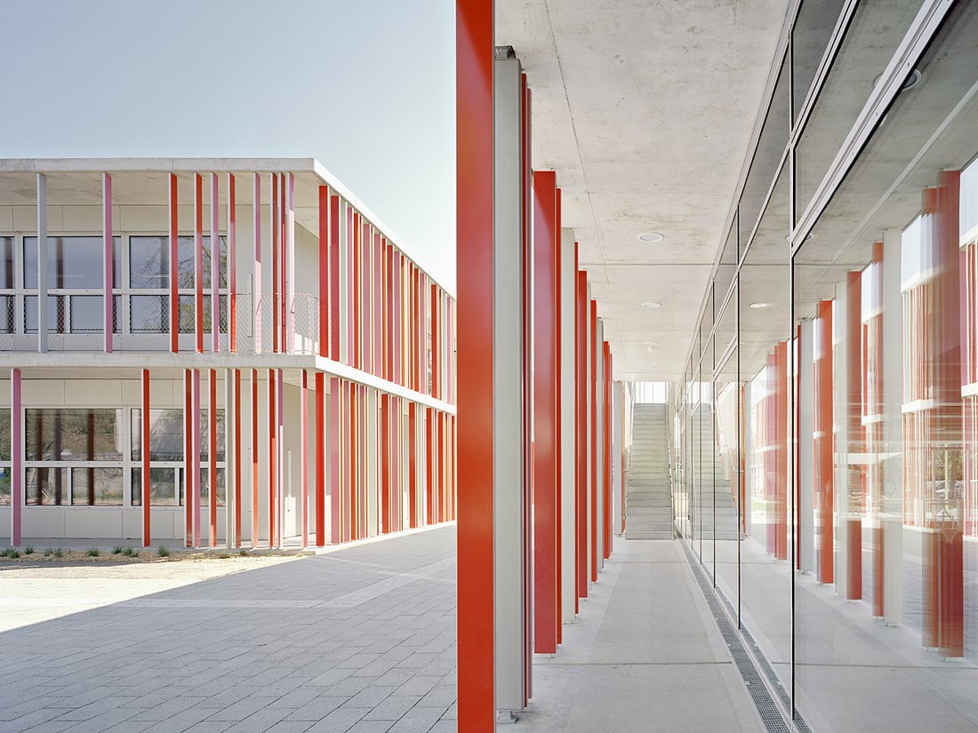 Evangelische Grundschule mit Sporthalle (2013)Ganztagesschule mit Montessori-Pädagogik, KarlsruheB: Schulstiftung der Evangelischen Landeskirche in Baden, KarlsruheA: wulf architekten GmbH, Stuttgart
