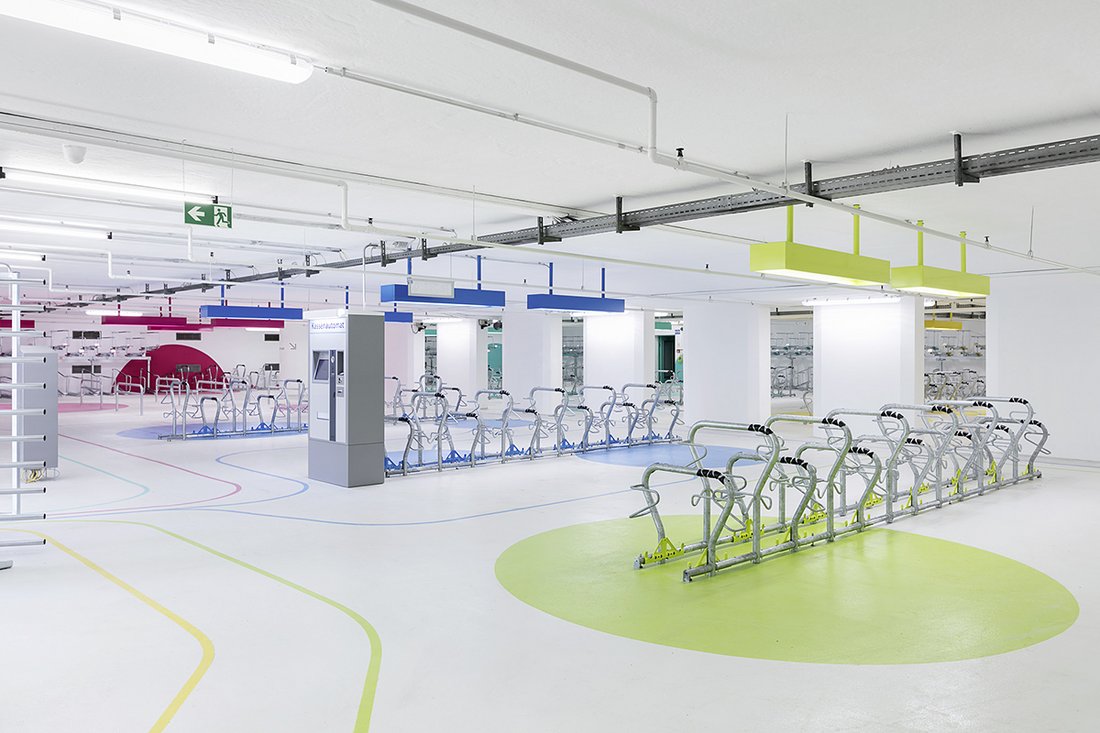 Umbau Parkhaus P3 in die Karlsruher Fahrradstation Süd (2018)Hauptbahnhof-Süd, KarlsruheB: Karlsruher Fächer GmbH, KarlsruheA: TAFKAL GmbH - Büro für Architektur, Karlsruhe