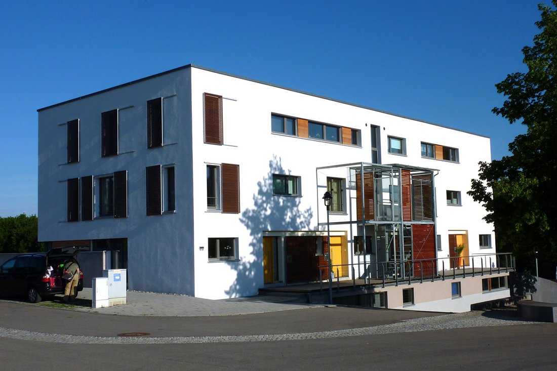 Mehrfamilienwohnhaus mit drei geothermischen Tiefenbohrungen (2006-07)Sonnensiedlung Egert, ES-Zell, Am Lindenplatz, EsslingenB: Archy Nova GmbH, Bietigheim-BissingenA: ASs Flassak & Tehrani Freie Architekten und Stadtplaner, Stuttgart