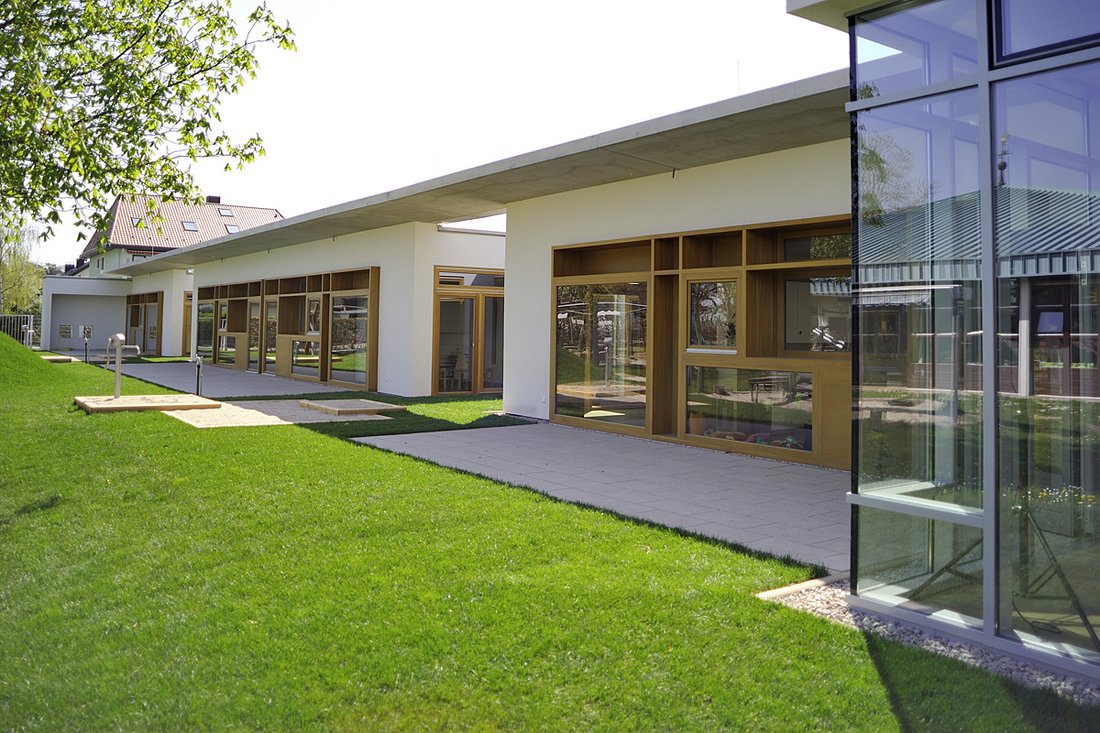 Kinderhaus Merlin mit Freianlagen (2013)BruchsalB: Rehabilitationszentrum Südwest für Behinderte, Gemeinnützige GmbH, Tobias David, Geschäftsführer, KarlsruheA: Klinkott Architekten BDA, KarlsruheLA: Helleckes Landschaftsarchitektur, Karlsruhe