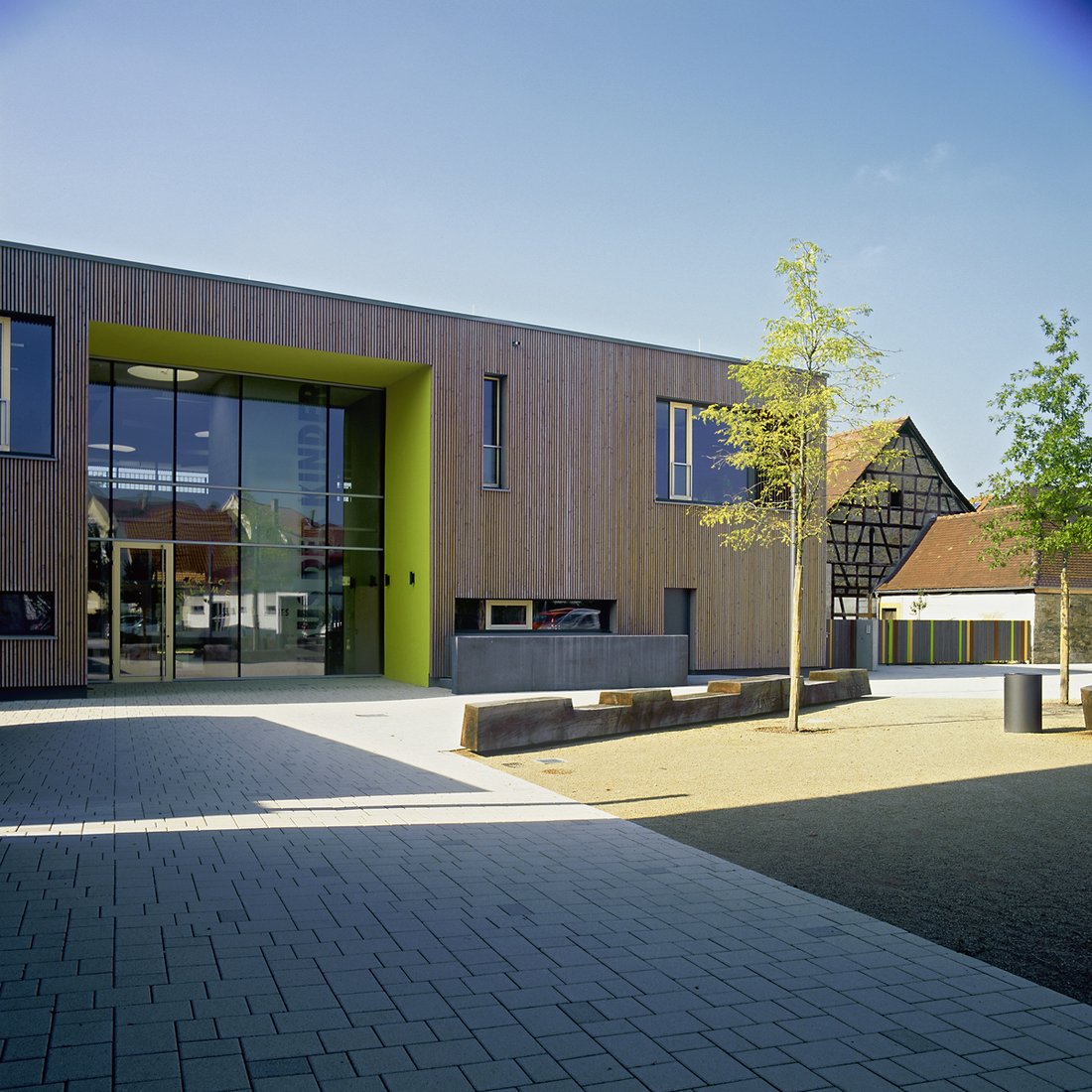 Erweiterung Grundschule Rheinhausen (2007)Hauptstraße 10, Oberhausen-RheinhausenB: Gemeinde Oberhausen-Rheinhausen, vertreten durch Bürgermeister Martin BüchnerA: Eichinger + Schöchlin GbR, Waghäusel