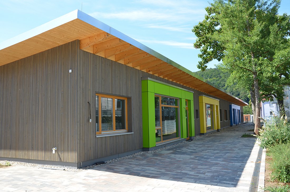 Kindertagesstätte mit sechs Gruppen, Kinderhaus Regenbogen (2014)WalzbachtalB: Gemeinde Walzbachtal, vertreten durch Bürgermeister Karl-Heinz BurgeyA: M.J.F. Ibele Architekten | Stadtplaner, Pfinztal
