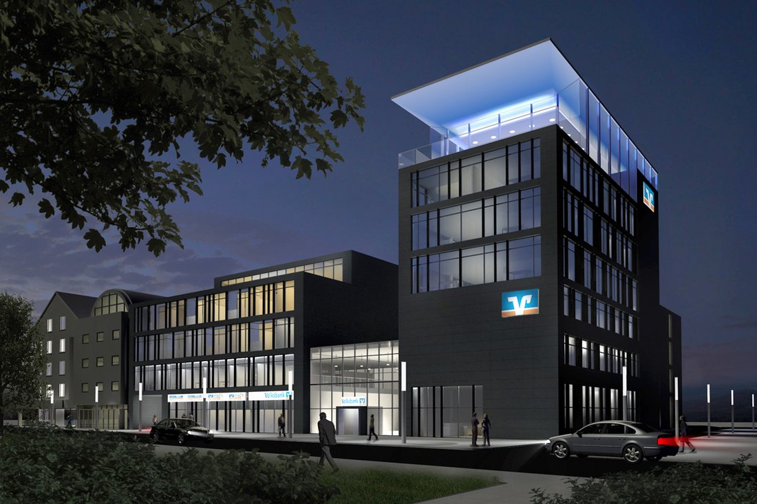 Neubau Hauptgeschäftsstelle Volksbank Ettlingen (2010-11)Wilhelmstr. 3-7, EttlingenB: Volksbank Ettlingen eGA: Planfabrik SPSDetlef Drescher, Thomas Glodde, Ettlingen