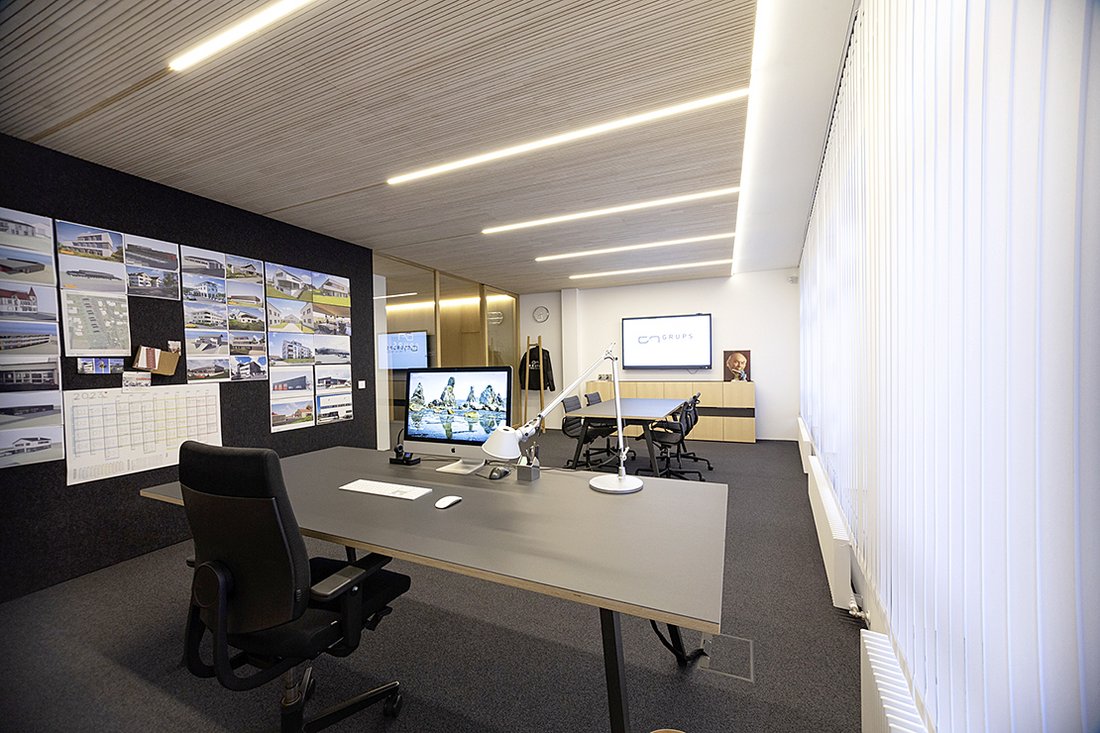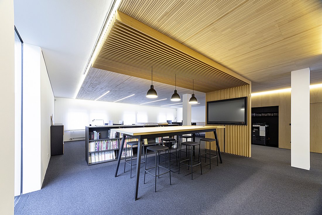 Die ehemaligen Praxisflächen im Marktplatz 4 in Niederstetten standen über viele Jahr leer. Bis sich die Firmen Grups Architekten und die Hohenloher Wohnungsbau GmbH entschieden, das Gebäude zu ihrer neuen Arbeitswelt umzugestalten. Entstanden sind moderne Arbeitsflächen für bis zu 18 Mitarbeiter:innen. Das Ziel war, einen Ort zum Arbeiten und Wohlfühlen zu schaffen.
