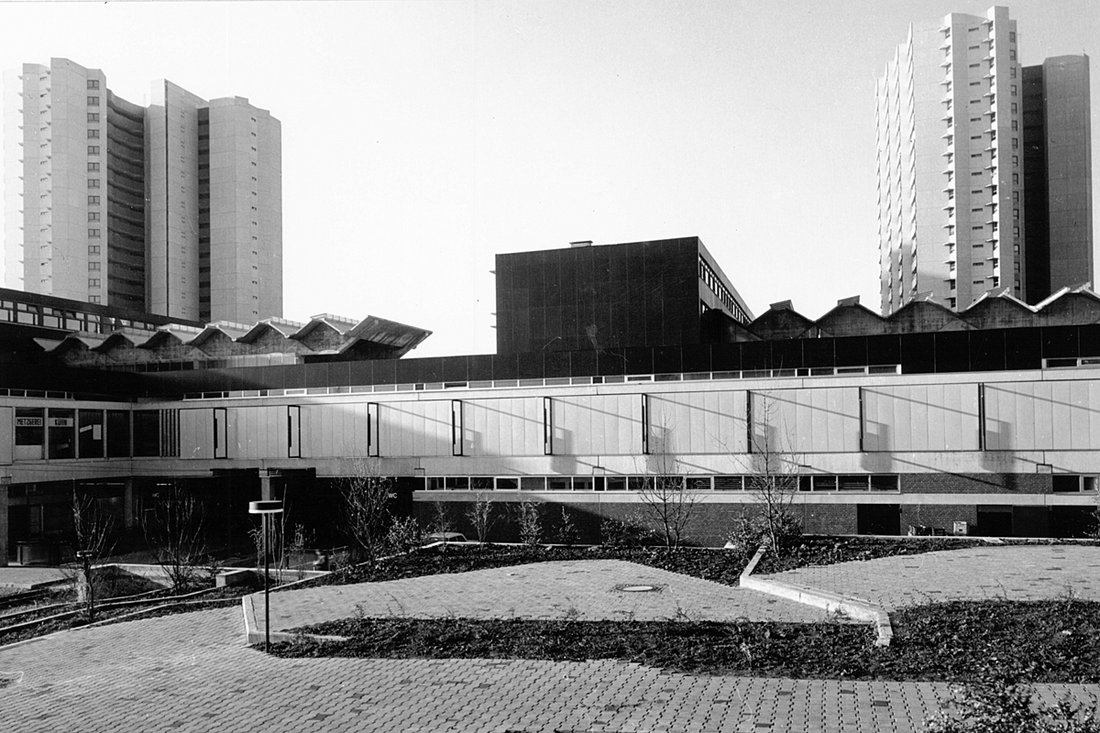 Stadtteil Mannheim Vogelstang (1968)Zentrum und WohnhochhäuserB: ehemals Neue HeimatA: Helmut Striffler, Striffler + Striffler Architekten GmbH, Mannheim