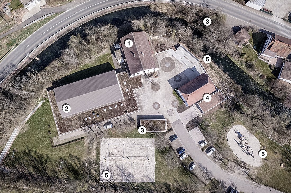 Kollmarhof 1782 bis 2022 Sanierung und Umnutzung in fünf Phasen Lehningerstraße 2, Tiefenbronn-Mühlhausen B: Gemeinde Tiefenbronn A: Architekturbüro JOST, Tiefenbronn LA: KLENSKE Landschaftsarchitektur, Tiefenbronn