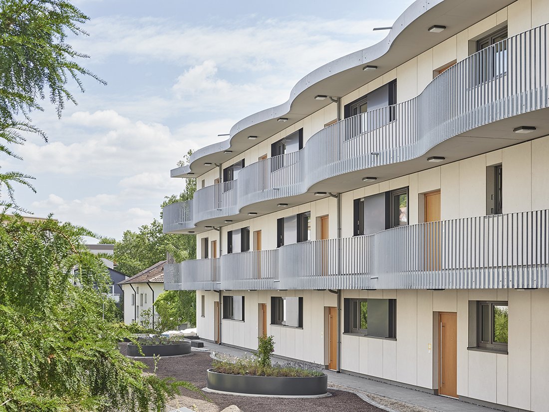 Geförderter Mietwohnungsbau in Holzbauweise | 2022 Drei Gebäude mit 49 Wohneinheiten, Krummer Weg, Pforzheim B: Stadtbau GmbH Pforzheim A: as Planungsgesellschaft mbH, Pforzheim