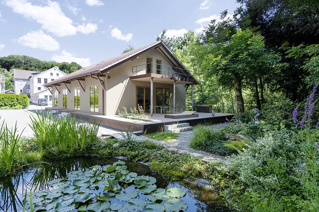 "Schwaneninsel" mit Kulturhaus "Schwanen", Jugendgästehaus "Insel" und Biergarten (1996–2003)Winnender Straße, WaiblingenB: Stadt Waiblingen, Stadtbauamt und Berufsbildungswerk BBW WaiblingenA: Planungsgruppe Kugler, Hermann Kugler. Doris Kugler, Stuttgart