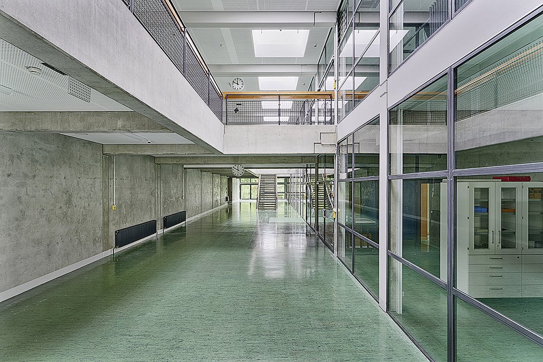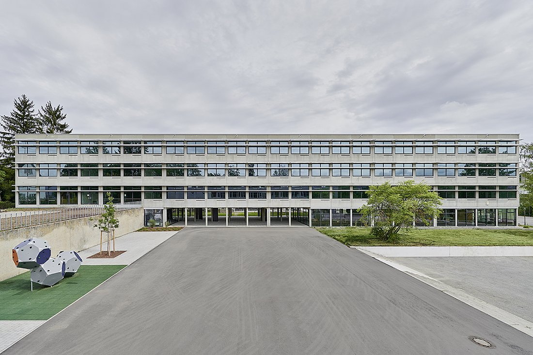 Gymnasium am Deutenberg 1965, Generalsanierung 2020 Johannesstraße 59, VS-Schwenningen B: Stadt Villingen-Schwenningen, Amt für Gebäudewirtschaft und Hochbau A: Günter Behnisch (1922-2010, Altbau), Stuttgart | hotz + architekten PartGmbB, Freiburg; Bauleitung: mit Thomas Scherlitz LA: Burkhard Sandler Landschaftsarchitekten Partnerschaft, Hohentengen/VS-Villingen