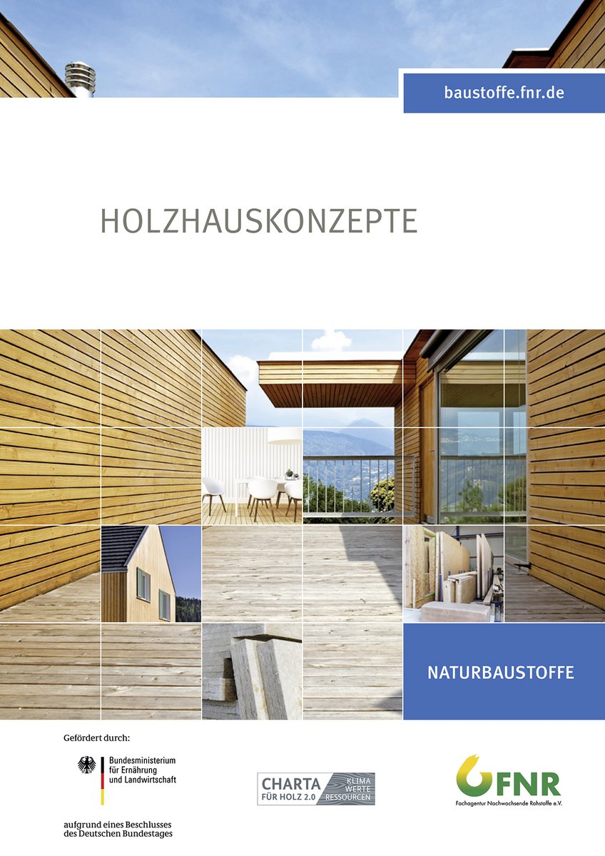 Die Neuauflage der Broschüre „Holzhauskonzepte“ - 64 Seiten A4- 3. aktualisierte Auflage 2018ist auf auf der Vereinshomepage in der Mediathek bestell- oder downloadbar: www.fnr.de