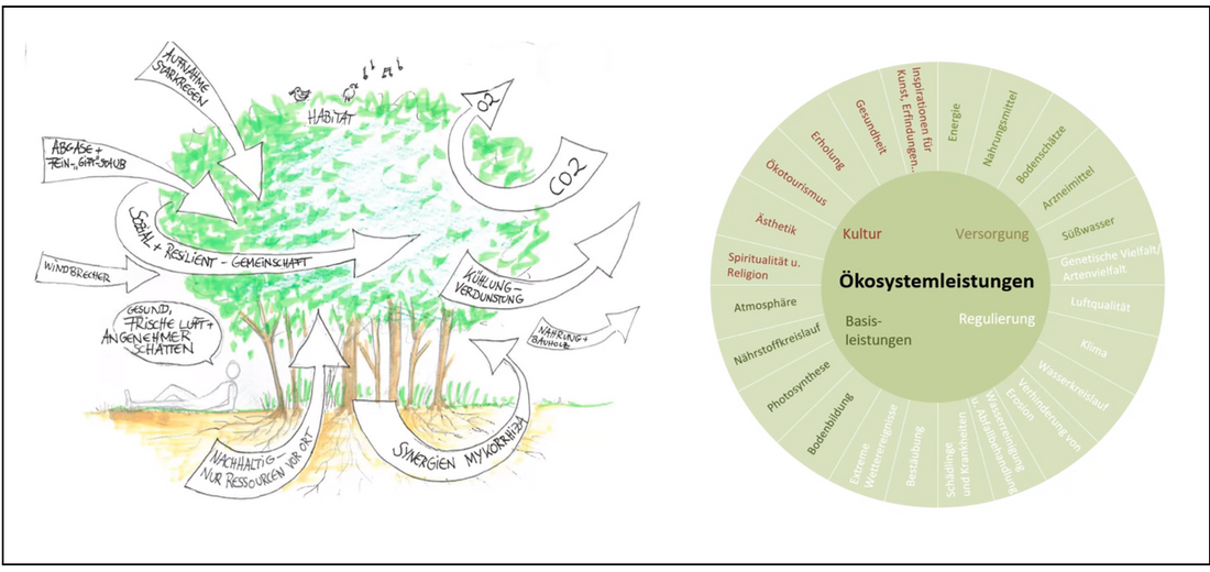 Die Welt wird immer wärmer, in Deutschland steigen die Temperaturen beständig, neun der zehn wärmsten Jahre seit Beginn der Wetteraufzeichnung 1881 lagen in den letzten 20 Jahren. Um eine weitere Überhitzung zu verhindern, müssen die Kohledioxid-Emissionen aus menschlichen Aktivitäten möglichst schnell, spätestens aber bis 2050, auf Netto-Null reduziert werden. Neben der Vermeidung des Kohlenstoffausstoßes, ist dafür mit Kohlenstoffsenken das CO2 aus der Atmosphäre zu filtern. Das tut zum Beispiel der Baum; er trägt durch seine Basisleistungen, bspw. Photosynthese, zu einer besseren Luftqualität bei. Doch er leistet noch einiges mehr, so erreicht er durch seine Verdunstungskühlung auch eine signifikante Temperaturreduktion in seiner direkten Umgebung. „Ohne Natur bzw. ihre Ökosystemleistungen wäre ein Leben auf der Erde nicht denkbar“, so Kaysers.