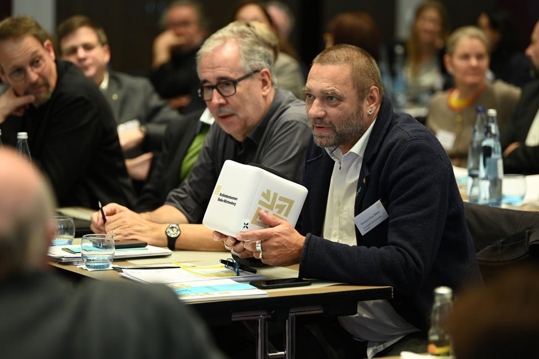 Wie wenig sinnvoll es ist, zwischen den Anliegen von Angestellten und Selbstständigen strikt zu trennen, ließ sich auch am Thema HOAI nachzeichnen. Naturgemäß sei er sehr daran interessiert, dass sein Büroinhaber "viel Geld herschaufele", erklärte Maximilian Bamme. Ihm gehe es dabei jedoch nicht nur um ein gesichertes Gehalt, sondern auch darum, dass seine Arbeit "nicht einfach hergeschenkt" wird. Der seit 2016 bei der Kammer eingetragene Architekt berichtete von einer "leichten Enttäuschung", die beim Gegenüber zu spüren sei, wenn man nicht auf ein eigenes Büro verweisen könne. Bei der Landesvertreterversammlung war der Tenor ein ganz anderer: In den Wortbeiträge der (noch) in vier Tätigkeitsarten unterteilten Delegierten spiegelte sich ein großes Zusammengehörigkeitsgefühl wider - quasi als Vorwegnahme dessen, was mit der entsprechenden Änderung des Architektengesetzes ohnehin die Zukunft des Berufsstands wird.