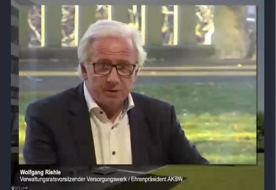 Ehrenpräsident der Kammer, Wolfgang Riehle, hielt in seiner Funktion als Vorsitzender des Verwaltungsrates des Versorgungswerks der Architektenkammer (VwdA) das einzige Grußwort in der gut vierstündigen Versammlung. Der Hintergrund war die beschlossene Absenkung des Verrentungszinssatzes von 3,5 auf 2,5 Prozent. Riehles Botschaft: Im Vergleich zu anderen Altersabsicherungssystemen stehe das VwdA gut da. Es gebiete die sachlich angezeigte Verpflichtung sowie die Fairness gegenüber den Mitgliedern, keine unrealistischen Prognosen abzugeben. Angesichts der anhaltenden Niedrigzinsphase komme man nicht umhin, den Zins anzupassen. Dies geschieht für alle Beiträge ab 1.1.2021.