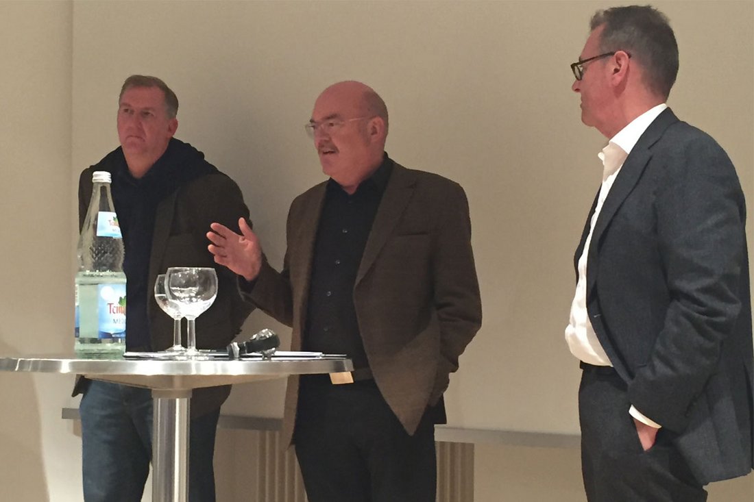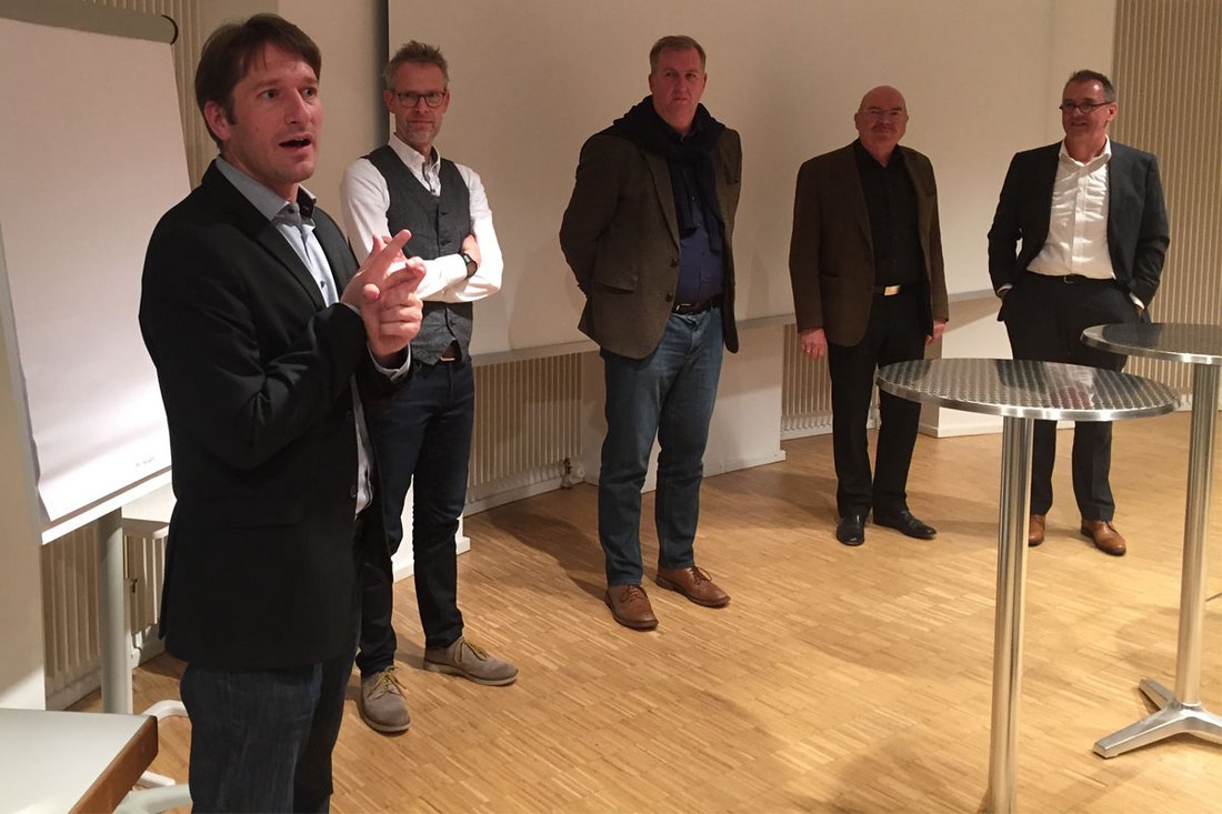 Im Anschluss diskutierten die beiden Referenten unter der Moderation von Wehrle mit dem Präsidenten der Architektenkammer Baden-Württemberg Markus Müller und dem Pfinztaler Architekten und Stadtplaner Moritz Ibele.