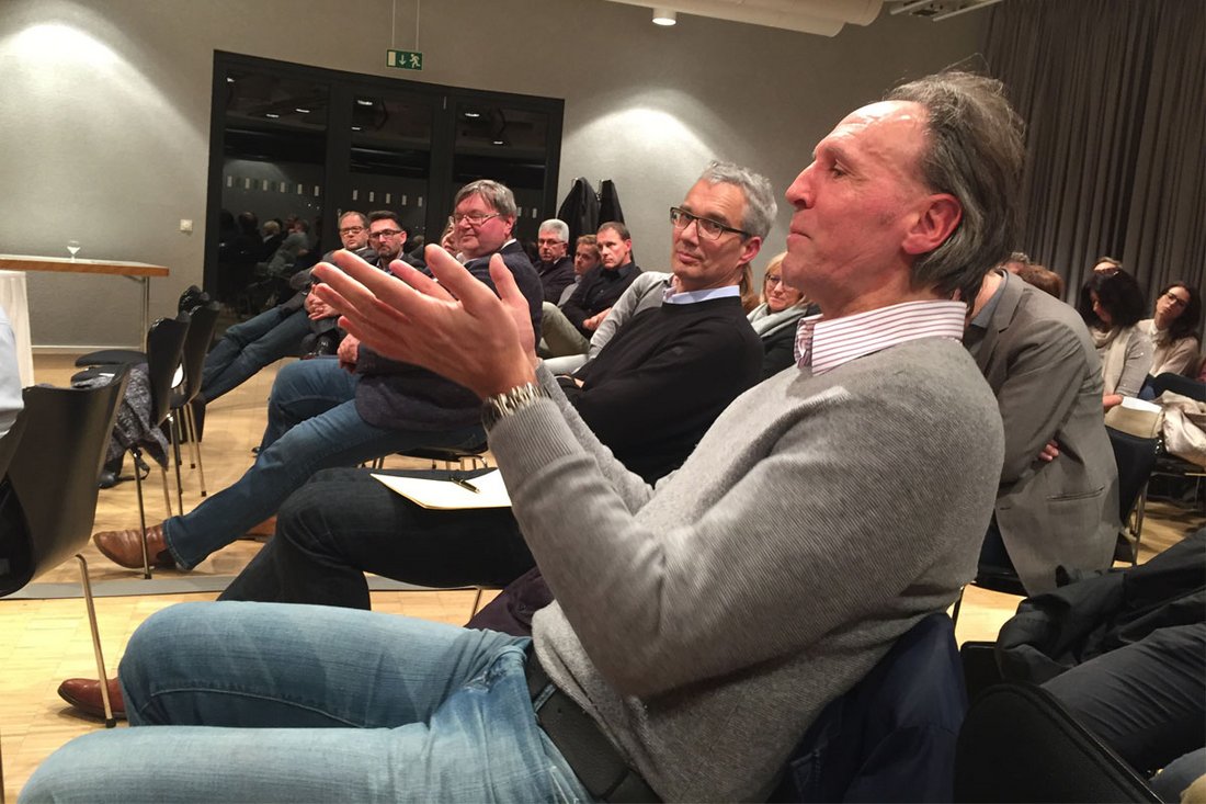 Klaus Wehrle, Vertreter der baugewerblich tätigen Architekten im Landesvorstand der Architektenkammer, führte in das Thema des Abends, die Projektentwicklung, ein. Im Fokus stand die Frage, welche Vorteile es für Architektinnen und Architekten haben kann, wenn sie nicht nur Treuhänder des Bauherrn - mit dem unter Umständen noch über unauskömmliche Honorare gestritten werden muss - sind, sondern selbst die Rolle des Bauherrn oder Projektleiters übernehmen.