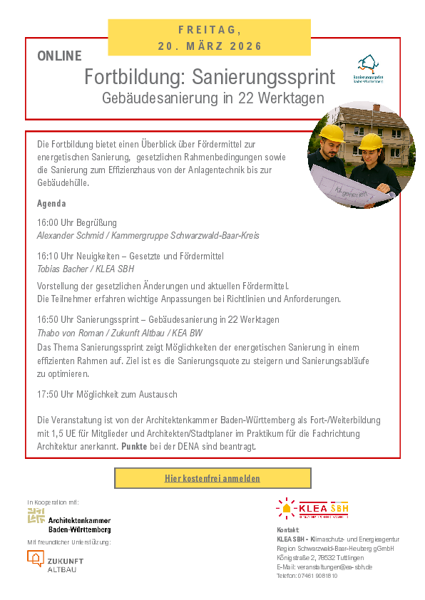 Diese Veranstaltung ist eine in Kooperation mit der KLEA SBH - Klimaschutz- und Energieagentur Region Schwarzwald-Baar-Heuberg gGmbH und mit der Unterstützung von ZKUNFT ALTBAU