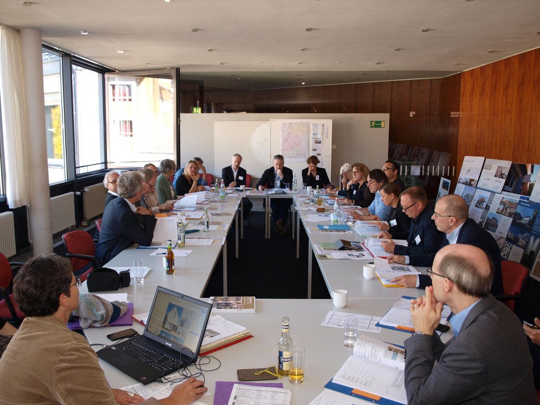 Drei Tage lang haben Experten aus Architektur, Verwaltung, Tourismus und Handwerk in einem zweistufigen Jury-Verfahren beraten, welche Einreichungen zum von Regierungspräsidium Karlsruhe, Architektenkammer Baden-Württemberg und Ministerium für Wirtschaft, Arbeit und Wohnungsbau Baden-Württemberg ausgelobten Auszeichnungsverfahren „Baukultur Kraichgau“ prämiert werden. Die Entscheidung fiel am 5. Oktober 2018 im Regierungspräsidium: 25 Projekte aus den Bereichen öffentliche Einrichtungen, Wohnen, Gewerbe und Weinbau werden als Beispiele vorbildlicher Baukultur im Kraichgau ausgezeichnet, weitere 32 Beiträge erhalten eine Würdigung als besonders gelungene Projekte. Sie werden bei einer Festveranstaltung im März 2019 öffentlich bekannt gegeben.Insgesamt 96 Beiträge aus dem Kraichgau wurden bis zur Abgabefrist am 20. Juli 2018 eingereicht, von denen 90 die Teilnahmevoraussetzungen am Verfahren erfüllten. Diese bereiste eine zwanzigköpfige Vorjury aus Architektur und Verwaltung an zwei Tagen vor Ort und sprach Empfehlungen zur Beurteilung für die Hauptjury aus. Auf Basis dieser Vorbewertung fällte die zweite Juryrunde, besetzt u. a. mit Vertretern aus Architektur, Verwaltung, Tourismus, Weinbau und Handwerk, unter dem Vorsitz von Regierungsbaumeister Martin Rist, Referatsleiter des Referats Städtebau, Bauplanungsrecht im Ministerium für Wirtschaft, Arbeit und Wohnungsbau Baden-Württemberg, ihre Entscheidung.„Kriterien wie zeitgemäße und funktionsbegründete Architektur unter Beachtung regionaltypischer Spezifika, innovative und ressourcenschonende Ausführung sowie der Beitrag für das Gemeinwesen leiteten die Entscheidungsfindung“, berichtet Andreas Grube, Vorsitzender des Kammerbezirks Karlsruhe und Mitglied der Jury. „Die Jury war beeindruckt ob der Fülle an Einreichungen aus den Kraichgauer Gemeinden. Die Entscheidungsfindung hat für viele und gute Diskussionen gesorgt.“Das von Regierungspräsidium Karlsruhe, Architektenkammer Baden-Württemberg und Ministerium für Wirtschaft, Arbeit und Wohnungsbau Baden-Württemberg im März 2018 ausgerufene Auszeichnungsverfahren „Baukultur Kraichgau“ zielt darauf, beispielhafte Gebäude und Planungen in Kraichgauer Gemeinden aufzuspüren und zu würdigen. Auf diesem Wege sollen nicht nur die baulichen Qualitäten der Region einer breiten Öffentlichkeit bekannt gemacht werden, sondern auch der Blick auf ortstypische Bautraditionen gelenkt und Wege einer zeitgemäßen Interpretation und Fortführung aufgezeigt werden. „Die Kulturlandschaft des Kraichgaus ist vielfach geprägt von gewachsenen Ortschaften mit beachtenswerter Architektur. Oft ergänzen auch neuzeitliche Erweiterungen mit interessanten Bauwerken die Gemeinden. Diese Baukultur gilt es weiterzuentwickeln, denn zeitgemäßes und qualitätsvolles Bauen ist ein bedeutender Faktor für die Lebensqualität und zukunftsfähige Entwicklung unserer Städte und Gemeinden“, so Dr. Harald Ringler, Stadtplaner und Mitglied der Jury. „Gelungene Baukultur umfasst neben ästhetischen und gestalterischen Fragen den Umgang mit schützenswerten Baustrukturen, den Erhalt vitaler Ortsmitten und öffentlicher Räume sowie architektonische Beiträge traditioneller Wirtschaftszweige wie dem Weinbau. Es gilt, das Bewusstsein dafür zu schärfen“Eingereicht werden konnten Projekte und Planungen aus den Jahren 2008 bis 2018 innerhalb einer Gebietskulisse von 40 Gemeinden im Landkreis Karlsruhe, Enz- sowie Rhein-Neckar-Kreis.Save the Date:Die öffentliche Bekanntgabe und Prämierung der Preisträger erfolgt im Rahmen einer Festveranstaltung in den Räumlichkeiten des Regierungspräsidiums Karlsruhe am 19. März 2019. An diesem Abend wird auch die erste Präsentation der Wanderausstellung mit den 25 ausgezeichneten Kraichgauer Projekten eröffnet.Begleitend wird ein Baukulturführer für den Kraichgau vorgestellt, in dem die Beiträge zum Auszeichnungsverfahren zusammengefasst werden. Weitere Informationen zum Projekt erhalten Sie auf der Internetseite der Architektenkammer Baden-Württemberg unter folgender Adresse: https://www.akbw.de/baukultur-kraichgau.html