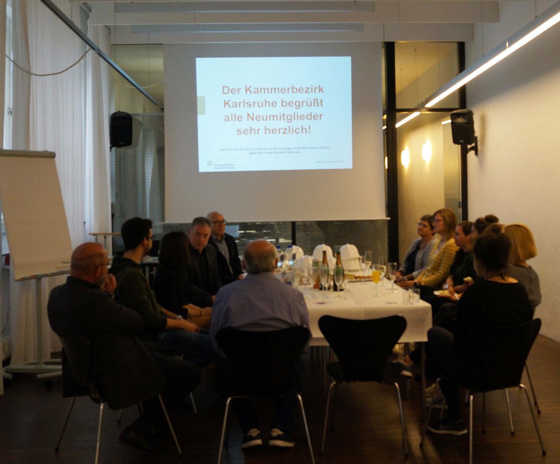 Der Kammerbezirk Karlsruhe lud am 20. Mai die neuen Mitglieder ein. Der Einladung ins Architektur- schaufenster folgten Mitglieder aus dem Stadt- und Landkreis Karlsruhe, aus Heidelberg und dem Rhein-Neckar-Kreis.