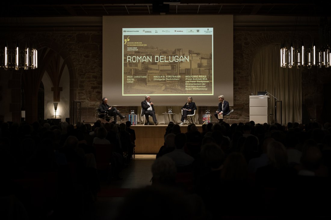 Für die anschließende Diskussion kommen Christiane Riedel, die selbst über eine tänzerische Ausbildung verfügt und als geschäftsführender Vorstand das ZKM in Karlsruhe leitet und Nikolai B. Forstbauer, vom Kulturresort der Stuttgarter Nachrichten auf die Bühne. Neben der Frage wie moderne Medien und die Digitalisierung die Architektur prägen werden – Christiane Riedel träumt von Fassaden, die als veränderbare Interfaces die Stadt von morgen bespielen – wird die Frage nach der skulpturalen Qualität der vorgestellten Projekte gestellt. Dabei wird die Frage diskutiert, ob sich die Architektur – wie auch Musik und Tanz –durch die Integration von Bewegung aber auch den Gebrauch von Medien weg von einer statischen hin zu einer zeitbasierten Kunst entwickeln kann. Damit kann sich auch Moderator Wolfgang Riehle anfreunden, dem das berühmte Schopenhauer Zitat, Architektur sei gefrorene Musik, noch nie gefallen hat.Was bleibt von diesem durchaus anregenden Abend im Gedächtnis? Sicherlich hat das Publikum formal eindrucksvolle und ikonographische Architekturen gesehen, denen man das Prädikat „Leuchtturmprojekte“ gerne verleihen mag. Im Nachgang sind den Projekten dann aber auch eine gewisse Glätte und eher oberflächliche Effekte eigen; die poetische Qualität eines Andreas Cukrowicz oder eines Enrique Sobejano - Delugans Vorgänger bei den Heidelberger Schlossgesprächen – vermisst man in den vorgestellten Bauten. Mag sein, dass dafür eine Intimität zwischen Haus und Besucher erforderlich ist, die bei dieser Art von Großprojekten nicht mehr gegeben sein kann.