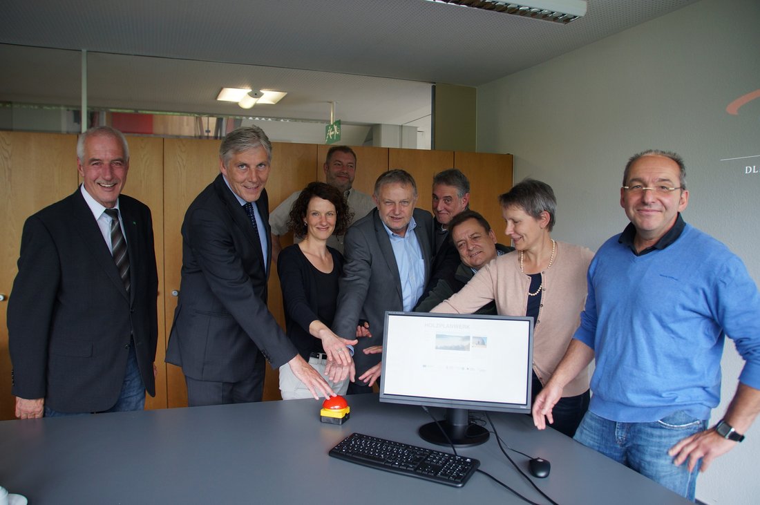Bild oben:Die Partner des LEADER-Projektes Holzplanwerk bei der Freischaltung des neuen Informationsportalsv.l.: Reinhold Rau (Dezernent Land- und Forstwirtschaf/Verbraucherschutz, Landkreis Calw), Landrat Helmut Riegger (Vorsitzender LEADER-Aktionsgruppe Nordschwarzwald, Landkreis Calw), Dajana Greger (Geschäftsführerin LEADER- Aktionsgruppe Nordschwarzwald), Jochen Bier (Waldbesitzerverein Nordschwarzwald), Rudolf Müller (Architektenkammer Baden-Württemberg, Kammergruppe Nordschwarzwald), Gerhard Schlecht (Innungsmeister, Schreinerinnung Landkreis Calw), Georg Jehle (Amtsleiter Kreisforstamt, Landkreis Freudenstadt), Sibylle Schneider-Campillo (Architektin, Bad Wildbad), Thomas Trautman (Fa. Tom Texter, Freudenstadt)