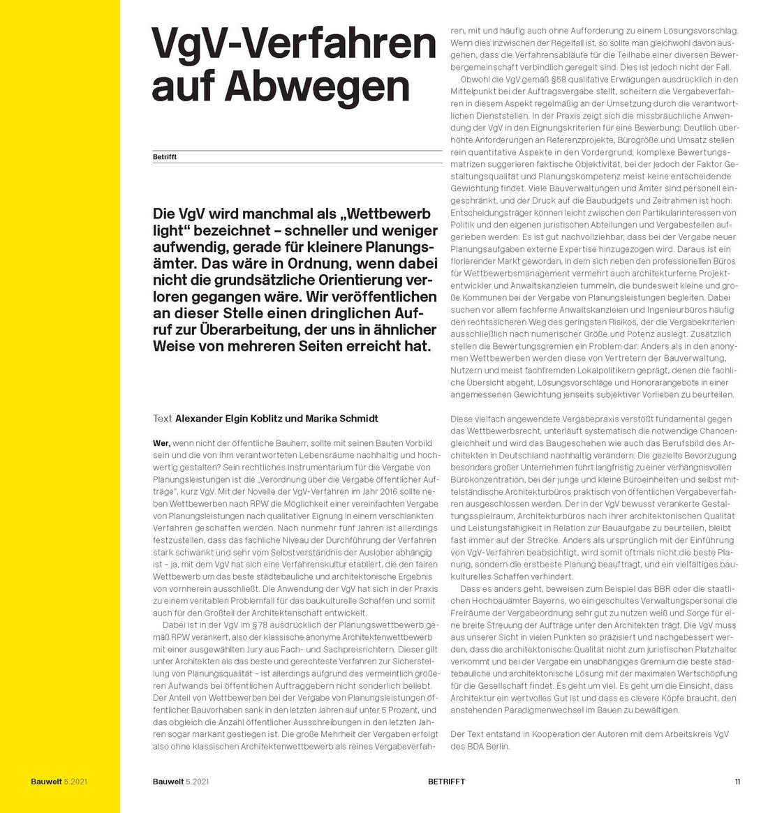 Die Veröffentlichung des oben stehenden redaktionellen Beitrages aus der BAUWELT 5/2021, erfolgt mit freundlicher Genehmigung der Redaktion Herrn Kaye Geipel / stellv. Chefredakteur