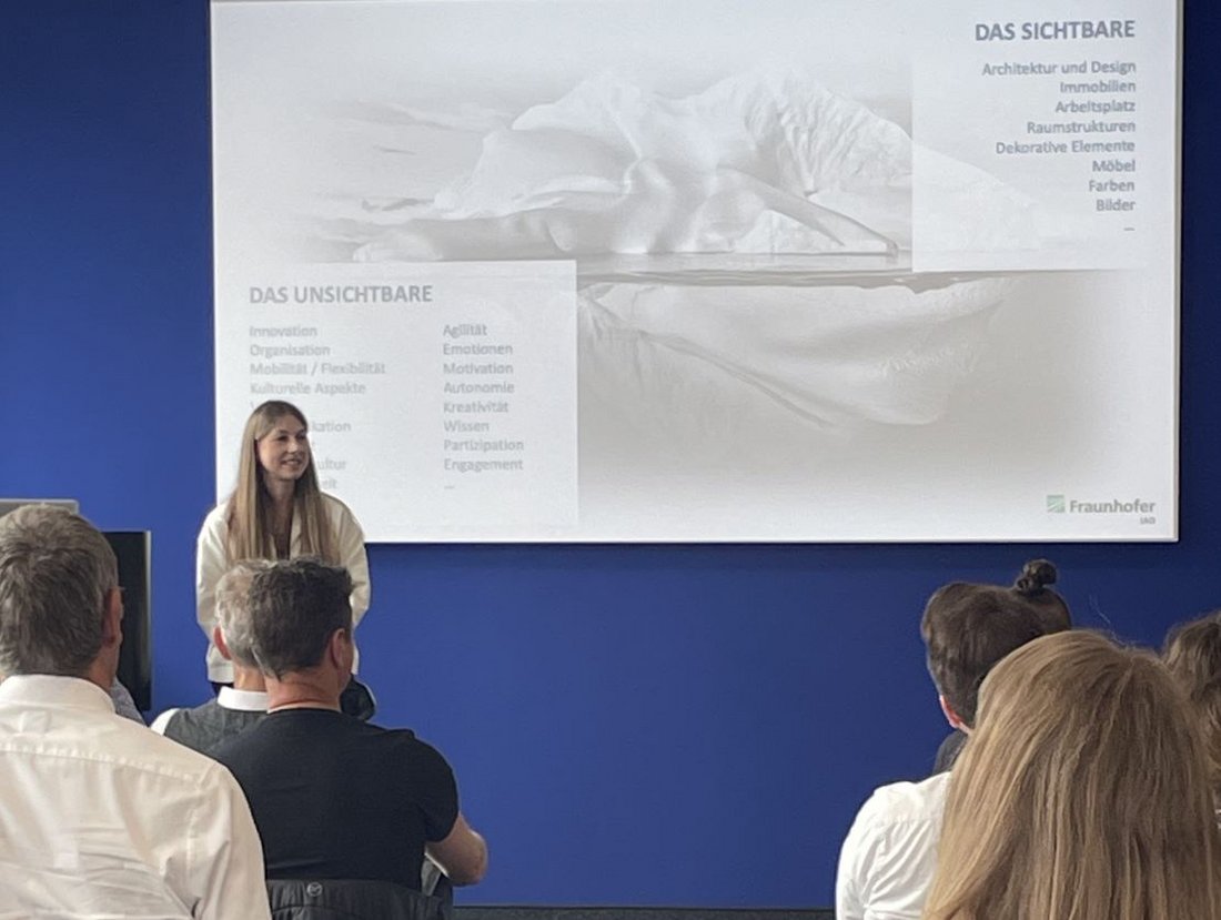 Mit hybriden Themen setzte Katharina Dienes die Impulse fort. Sie teilte Ihre Forschungsergebnisse zu Schwarmintelligenz, Schwarmstädten und informellen Räumen. Neben dem Trend, dass wir In Zukunft vermehrt aus dem Büro herausgehen, sieht sie ein großes Potential in Themen wie crowd work, talent sharing und job sharing. „Innovation und Schwarmintelligenz sind räumlich unabhängig. 80% von Ideen und neuem Wissen entstehen im informellen Austausch."