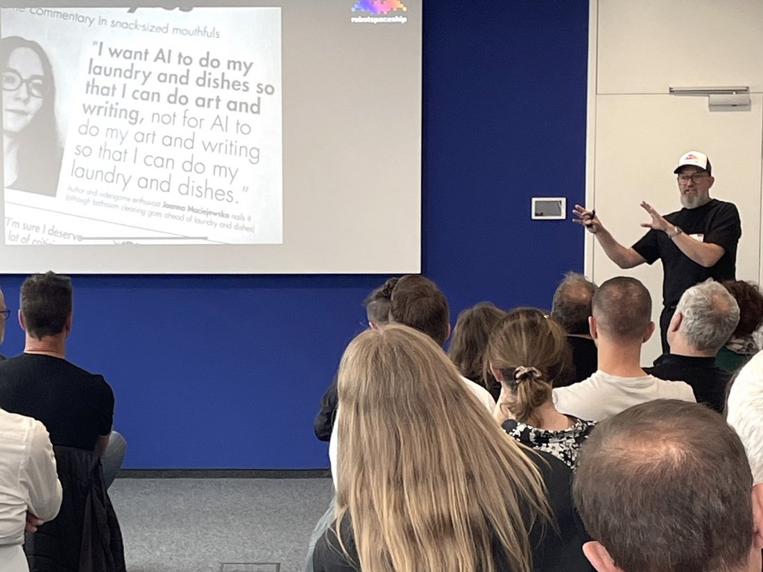 Florian Holste verabschiedete sich schon mal vom eintönigen Arbeiten: „Goodbye monkey-business.“ Der Geschäftsführer von 8020.eco prognostizierte, dass künstliche Intelligenz (KI) in den nächsten 24 Monaten die repetitive Fokusarbeit ablösen wird. Kreativität, Neugierde und Empathie seien deshalb künftig wichtige Kernkompetenzen. In seinem Unternehmen legt er großen Wert auf die Mitbestimmung der Mitarbeiterinnen und Mitarbeiter: Ein Großteil der Entscheidungen wird gemeinsam getroffen, vorbereitet mit KI.